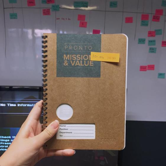 สมุดเล่มนี้เป็นสมุดที่กล่าวถึง mission และ value ของ Pronto เป็นสมุดที่ได้อ่านครั้งแรกตอนสัมภาษณ์ฝึกงาน และก็ชอบมาก อยากได้สมุดเล่มนี้ตั้งแต่เข้ามาฝึกงาน จนผ่านฝึกงานก็แล้ว จนผ่านมาเป็น contract ก็แล้ว สุดท้ายได้ตอนมาเป็น Full-time นี่ล่ะ โดยที่ KD และ Cory จะเขียนข้อความเซ็นทุกเล่มที่ให้กับทุกคน -
