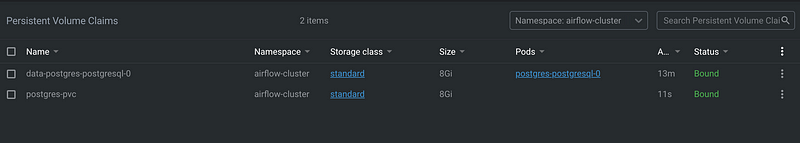 $ kubectl apply -f pvc.yaml -n airflow-cluster