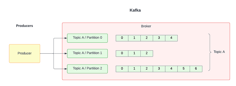 Producer จะเป็นคนส่ง message ไปหา topics และ message จะถูกกระจายไปตาม partition