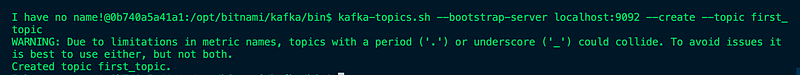 kafka-topics.sh --bootstrap-server localhost:9092 --create --topic first_topic --partitions 3