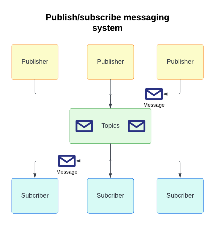 Publish/subscribe messaging หรือ pub/sub messaging คือ pattern หนึ่งในการส่งข้อมูลจาก ผู้ส่ง (publisher) ไปหา ผู้รับ (subscriber) โดยจะส่งเป็น piece of data (message) แต่ความพิเศษคือ Publisher จะไม่ได้ระบุเป็นพิเศษว่า subscriber ต้องเป็นใคร และสามารถส่งไปหาหลาย subscriber ก็ได้