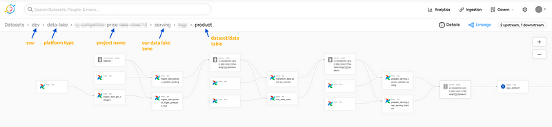 DataHub นั้นไม่เพียงแต่ทำเรื่อง Data Catalog แต่ทำให้เราสามารถเห็นว่า dataset นั้นถูกสร้างมาได้อย่างไร และ track การไหลของข้อมูลได้ง่ายขึ้น