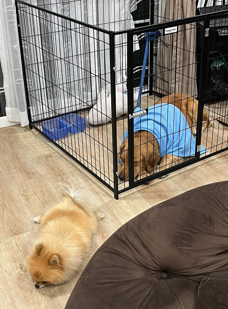 ตอนนั้นเลยคิดว่า งั้นต้องมีกรงแล้วล่ะ เพื่อที่ว่าจะแบ่งพื้นที่ในบ้านให้มี safe zone ของดันเต้ เลยออกไปซื้อกรงเพิ่มที่ Pet Kingdom