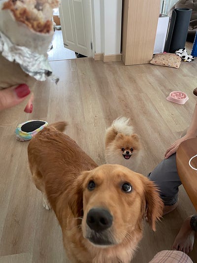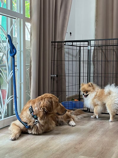บทความนี้เราจะแชร์ประสบการณ์ส่วนตัวในการเลี้ยงหมา 2 ตัวต่างสายพันธุ์ ตัวหนึ่งเป็นหมาพันธุ์ใหญ่ โกลเด้นรีทรีฟเวอร์(ที่นิสัยไม่เหมือนโกลเด้นทั่วไป) และอีกตัวเป็นหมาพันธุ์เล็ก ปอมเมอเรเนียน ในการอยู่ร่วมกันโดยที่เจ้าบ้านเป็นเจ้าปอมมาก่อน และวิธีแก้นิสัยไม่พึงประสงค์ที่เราได้ลองสอนเจ้าเด็กๆ