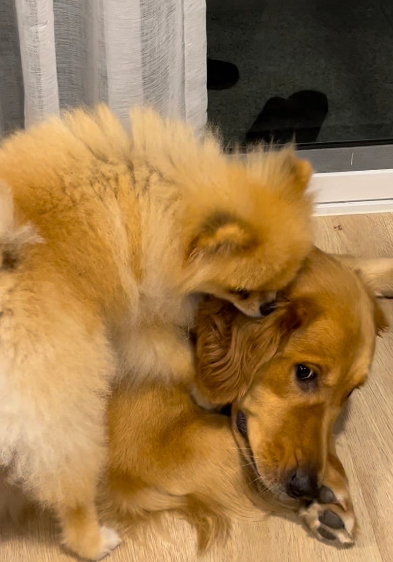 เกริ่นคือ เราย้ายเข้ามาบ้านแฟน (ว่าที่สามี) ได้สักพักแล้ว ซึ่งบ้านแฟนเลี้ยงปอมแต่เดิมอยู่แล้วคือยากิ ส่วนตัวเราเลี้ยงโกลเด้นที่บ้านตัวเองอยู่แล้วคือดันเต้ จนเมื่อเราตั้งใจละว่าอยากให้ดันเต้มาอยู่กับเราด้วย แบบกล้าๆกลัวๆ เพราะเรารู้ว่าดันเต้เขาไม่ค่อยชอบคนแปลกหน้ามากๆ จึงค่อนข้างกังวล พอต้องมาอยู่ในบ้านที่มีหมาเล็กมากๆ