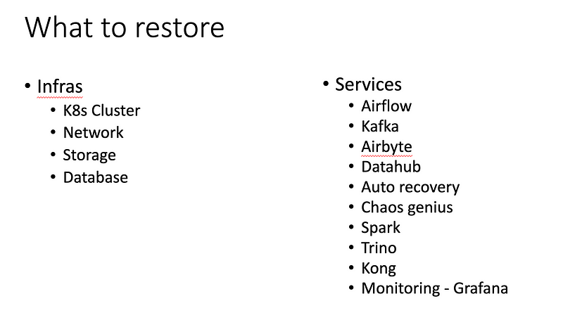 เนื่องจากเรา initiate และ maintain หลาย service ไม่ว่าจะเป็น Airflow, Kafka, Airbyte, DataHub, Spark, Trino, Kubernetes Cluster ทั้ง network, storage และ database
