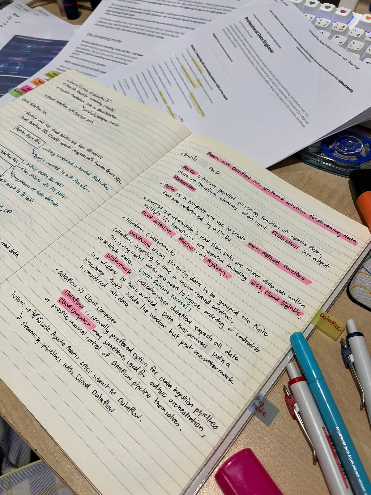 อย่างบาง service เช่น Bigtable, Cloud Spanner, Dataproc, Dataflow เราไม่เคยใช้ หรือถึงแม้จะเคยใช้แล้ว เช่น Pub/sub, BigQuery เราก็ต้องกลับไปจำ default config และ key feature ที่สอดคล้องกับงาน Data engineer เพราะมันต้องใช้มุมการ maintain data pipeline ด้วย